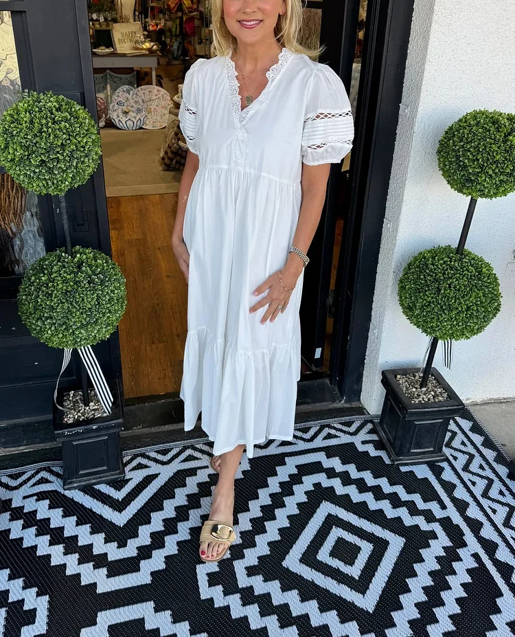 Women's Solid Color Lace Detail Midi Dress (Buy 2 Free Shipping)